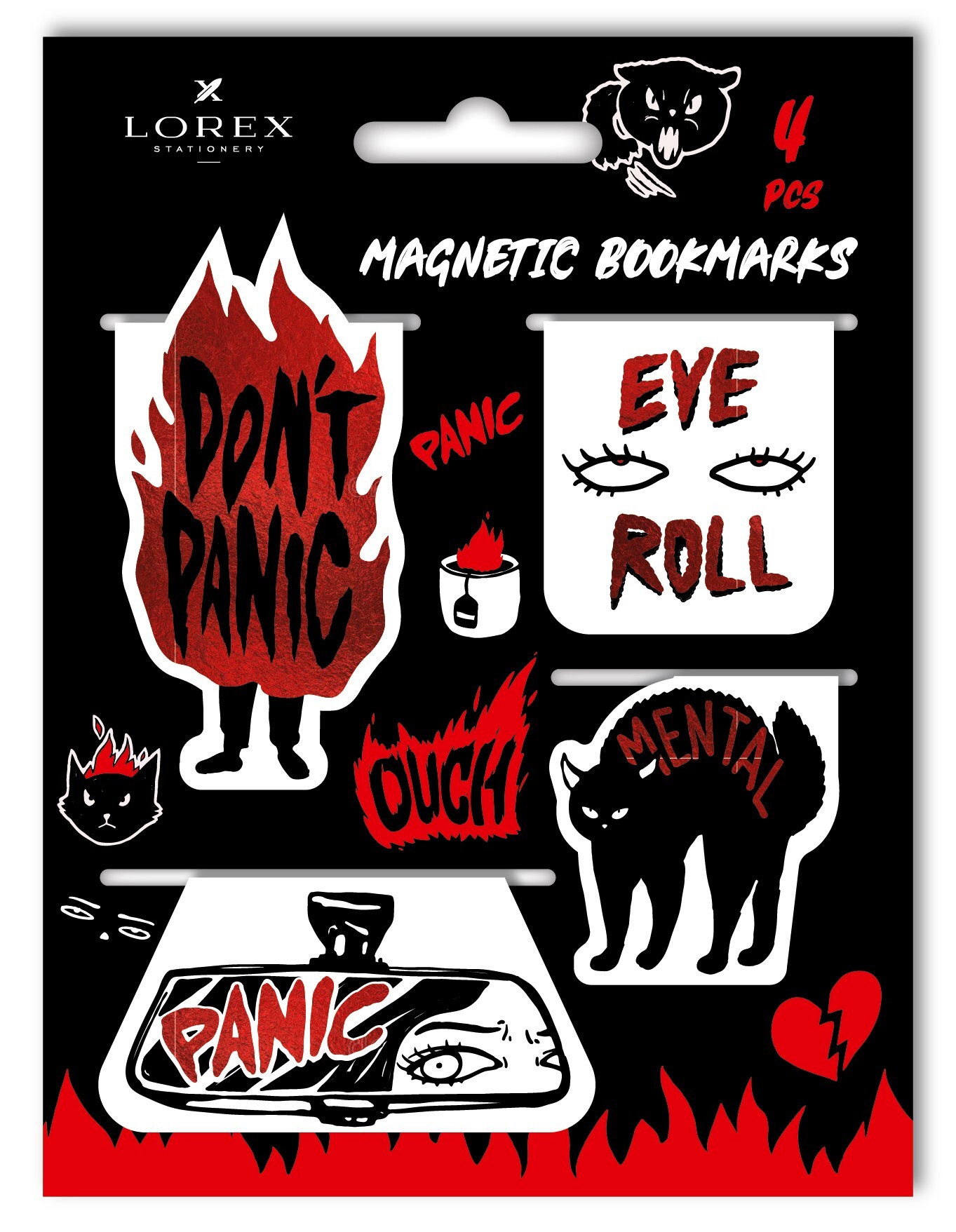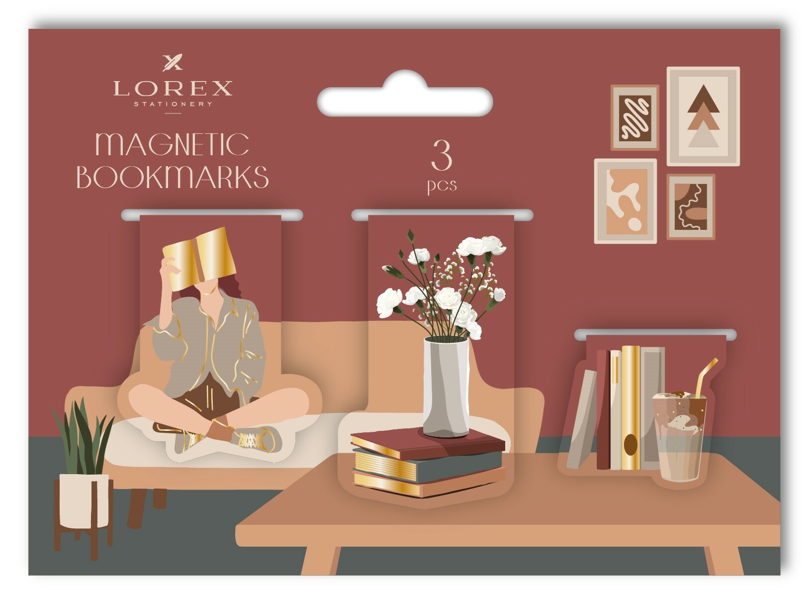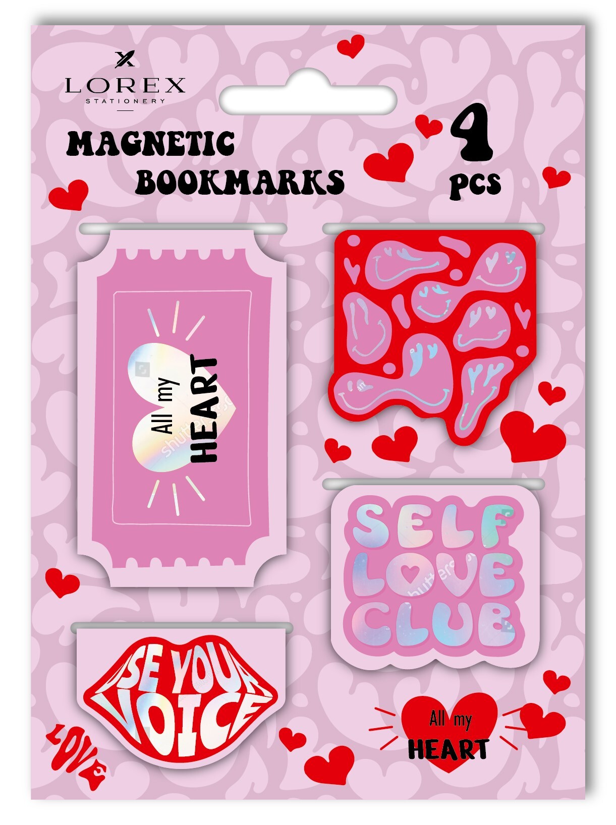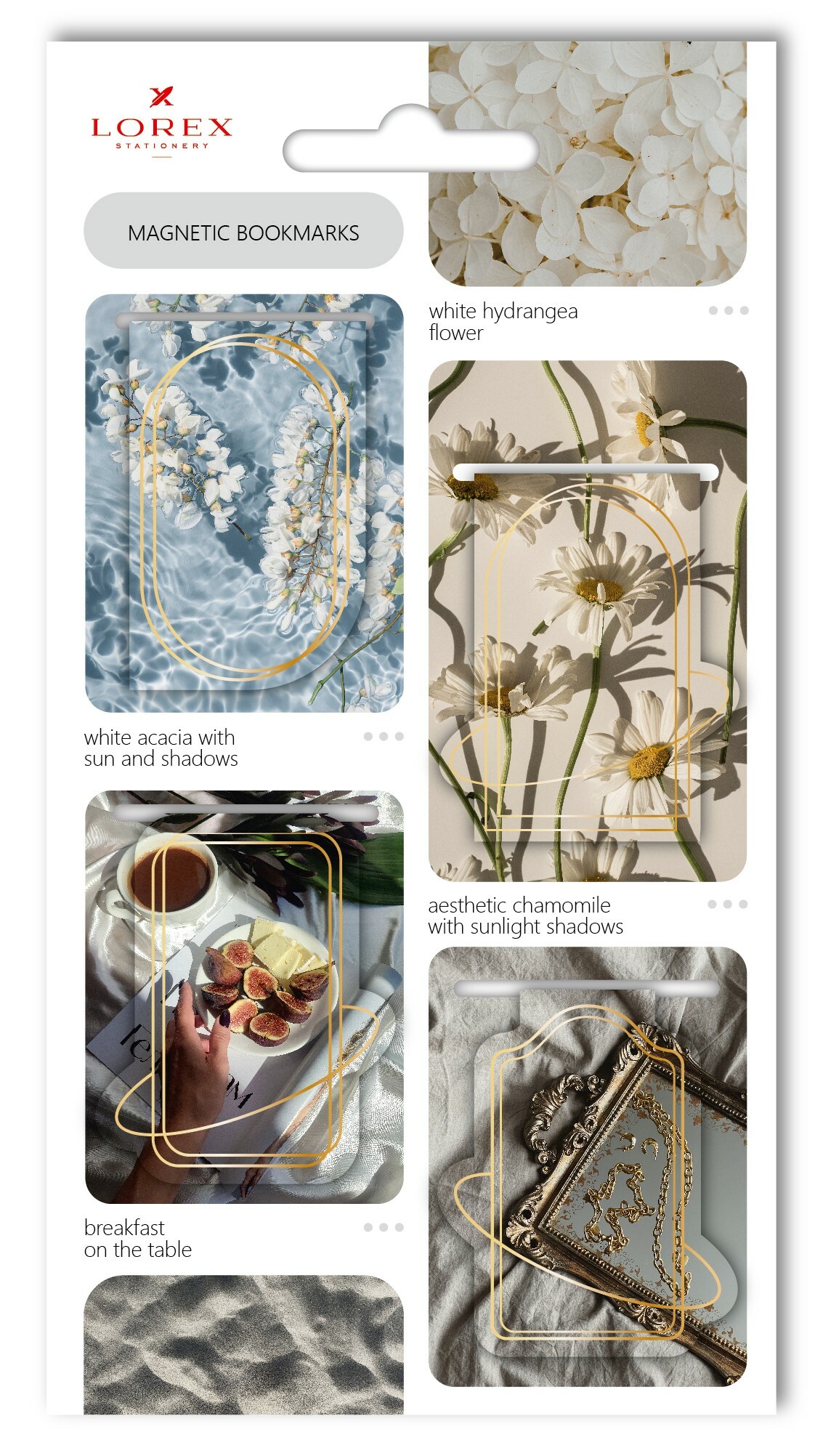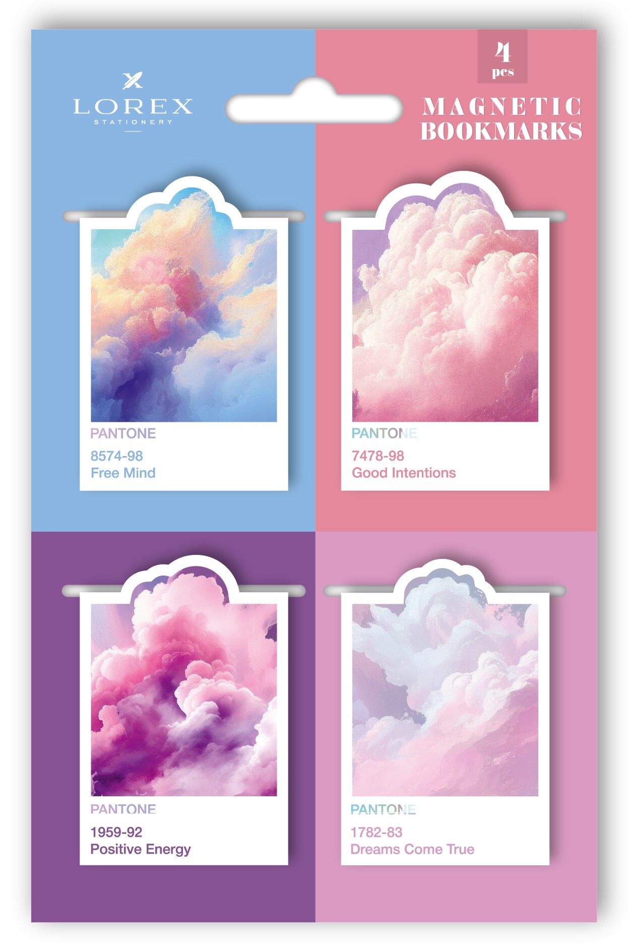 Наборы по 3-4 закладки упакованы в пакет с европодвесом и цветной картонной вложкой дополняющего дизайна.